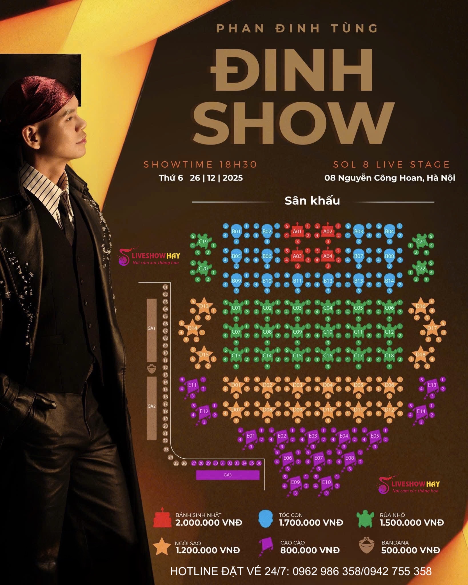 Mua Vé Liveshow Đêm Nhạc Phan Đinh Tùng – Đinh Show ngày 26/12/2025 tại Hà Nội – VÉ ĐẸP TỪ BAN TỔ CHỨC. Gọi mua vé : 0942 755 358 / 0962 986 358 – (Xem SƠ ĐỒ VÉ bên dưới bài viết)